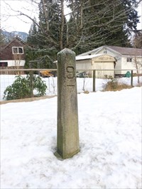 Milestone 97 represents ninety-seven miles away from the Vancouver Main Post Office located at Hastings and Granville. Today this stretch of Old Yale Road in Hope is a quiet residential street.