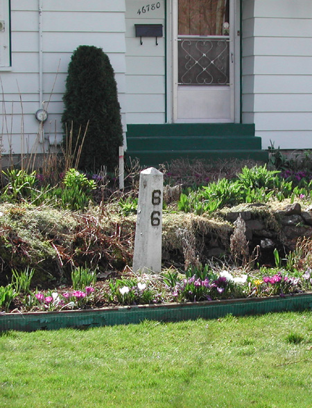 Milepost 66 is located in the front garden of 46780 Yale Road, just east of downtown Chilliwack.